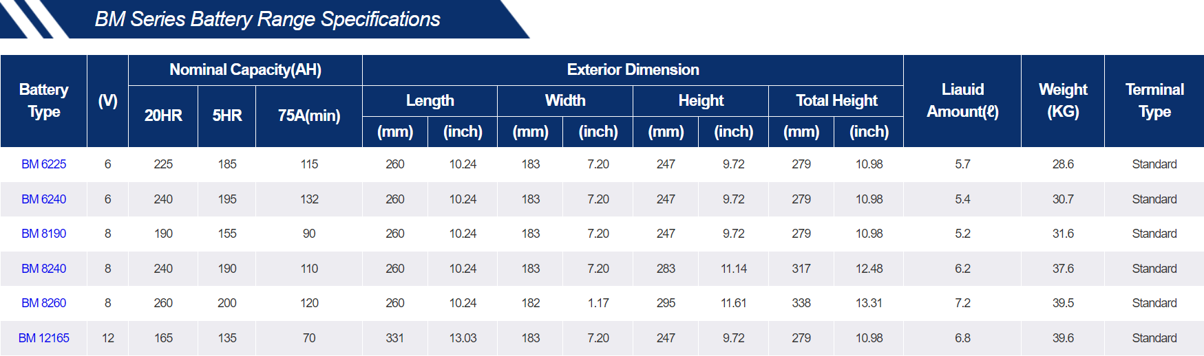BM Series (Xe golf / Xe điện) là giải pháp lưu trữ năng lượng hiệu quả cho phương tiện di chuyển như xe golf và xe điện. Với công nghệ chất lượng cao, sản phẩm này mang lại hiệu suất ổn định và tuổi thọ dài hơn cho phương tiện của bạn. BM Series được thiết kế để đáp ứng nhu cầu lưu trữ năng lượng trong các ứng dụng di chuyển đòi hỏi độ tin cậy cao.